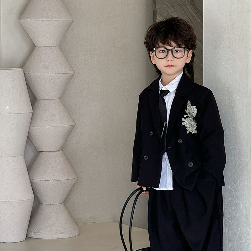 儿童西装套装男童新款刺绣休闲男孩小西服上衣潮帅气花童礼服