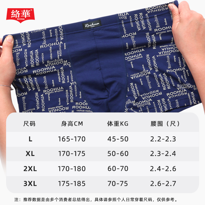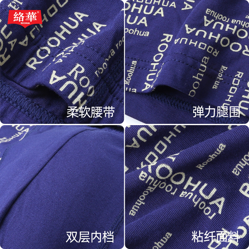 roohua络华男士纤维内裤男平角裤时尚青年字母印花中腰透气四角裤