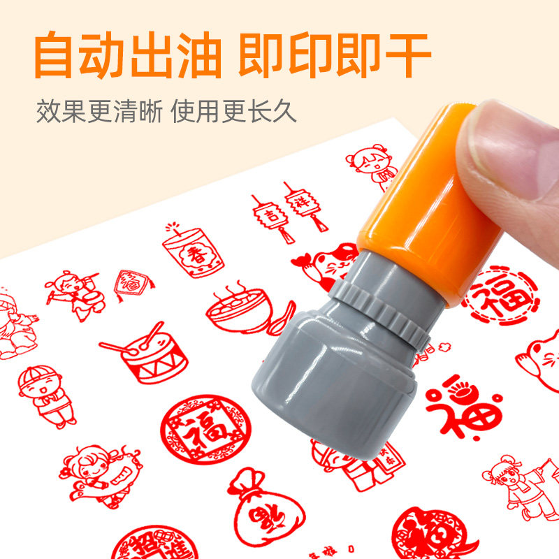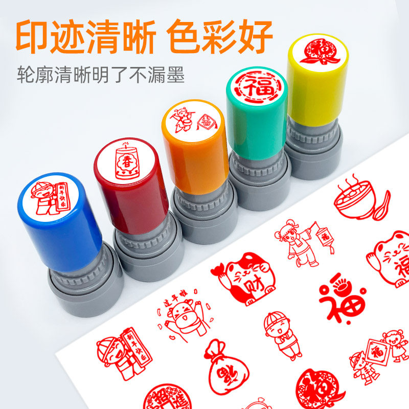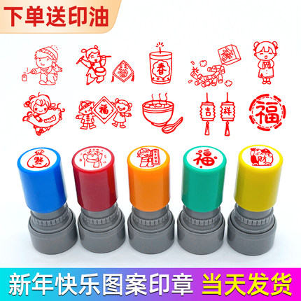 新年快乐主题可爱福字印章祝福春节年会图案卡通可爱儿童马年大吉迎春藏书盖章祝福语恭喜发财灯笼印章过年