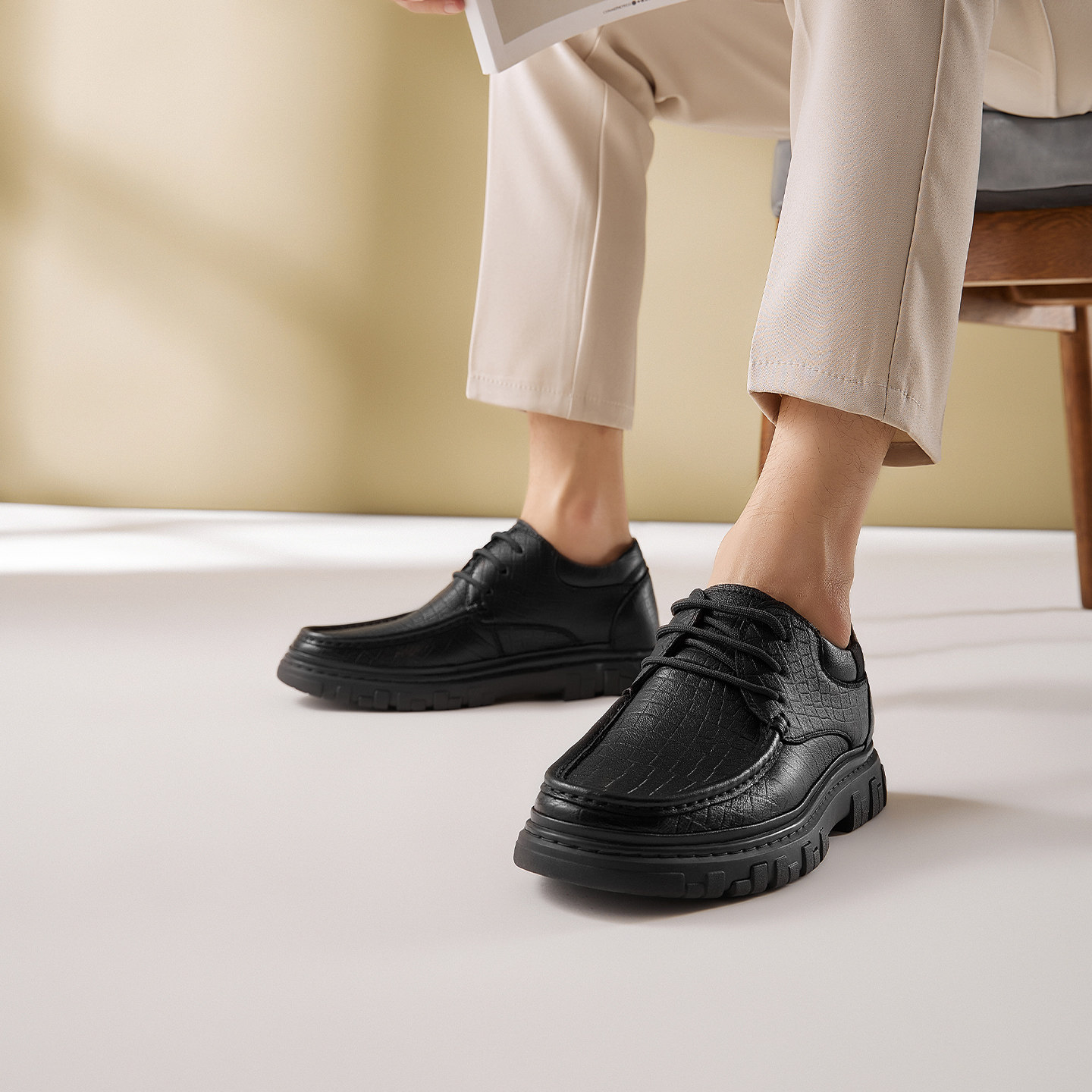 高哥内增高休闲皮鞋男士春季新款时尚男鞋软底软面隐形增高鞋子男