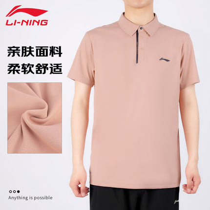 李宁短袖polo衫男款夏季翻领排湿速干舒适透气纯色简约服APLU119