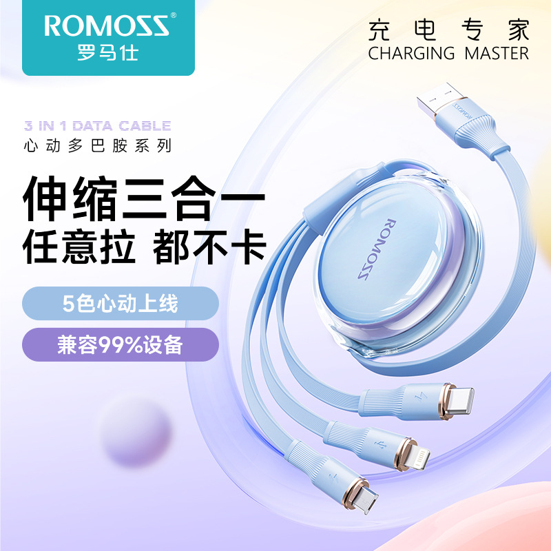 罗马仕三合一充电线伸缩版