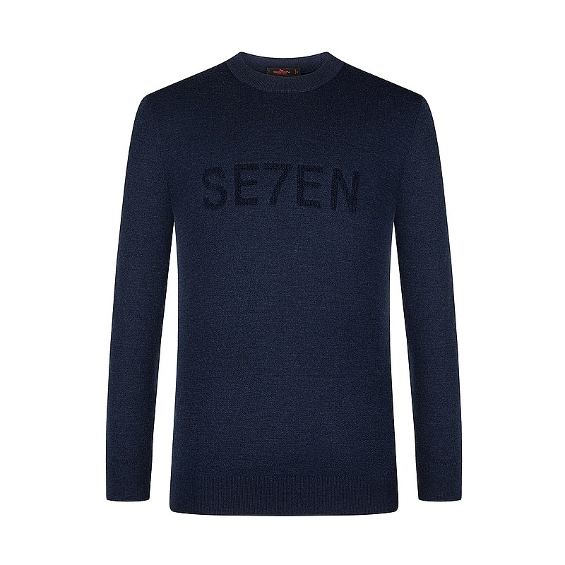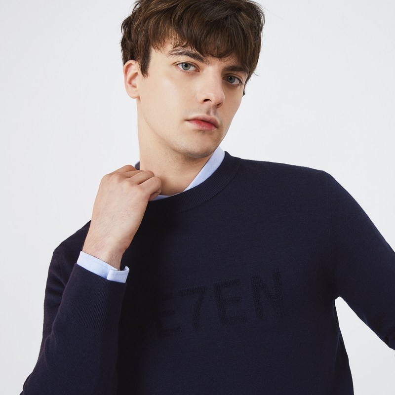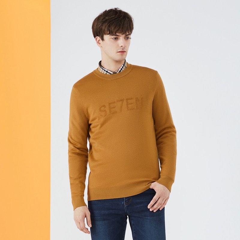 【可机洗毛衫】柒牌男士圆领毛衣秋冬新款时尚字母休闲弹力套头衫