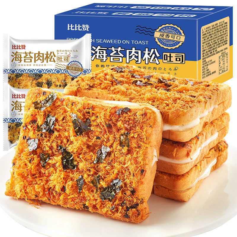 比比赞海苔肉松吐司面包早餐整箱即食充饥蛋糕小零食小吃休闲食品