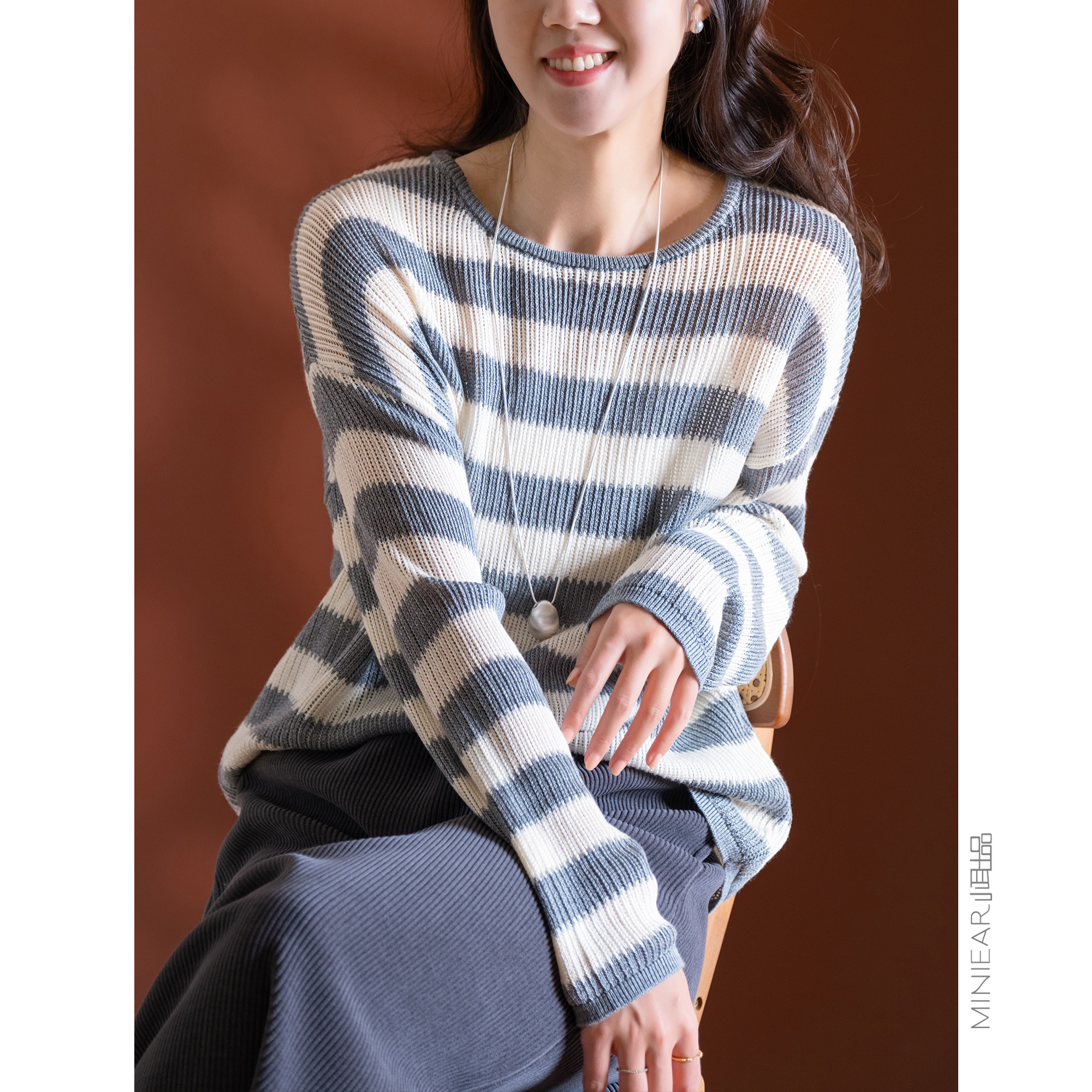 小耳出品 含羊毛多股纱/错针雪花针/微镂空肌理 圆领撞色针织毛衣