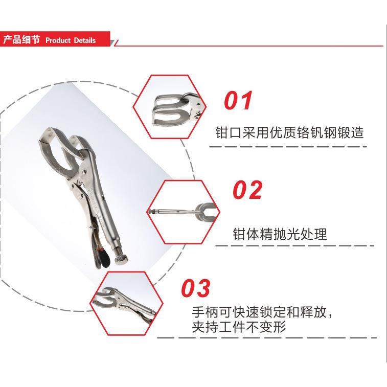 钢盾焊接用大力钳10焊接用大力钳圆嘴光柄弧齿大力钳S048008