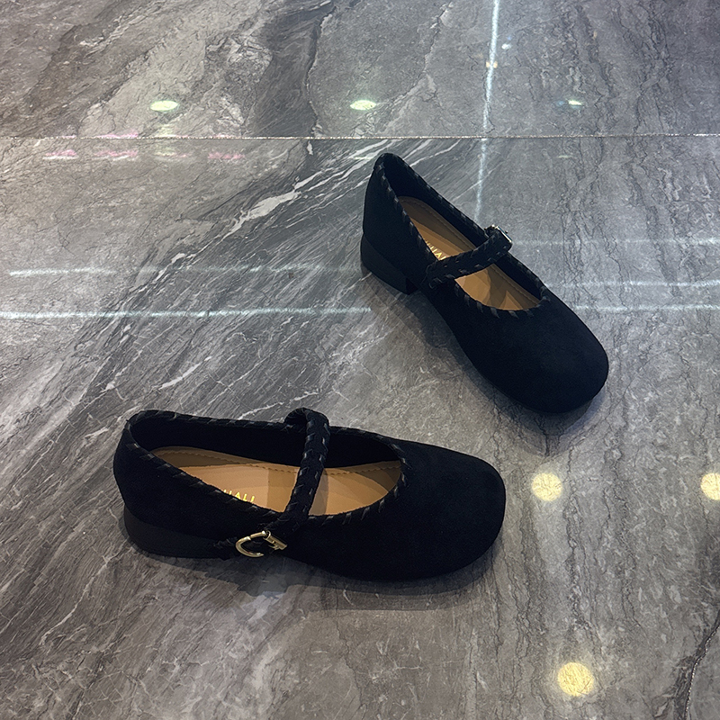 慵懒民族风~真皮平底浅口单鞋女2025秋轻便软底时尚圆头玛丽珍鞋