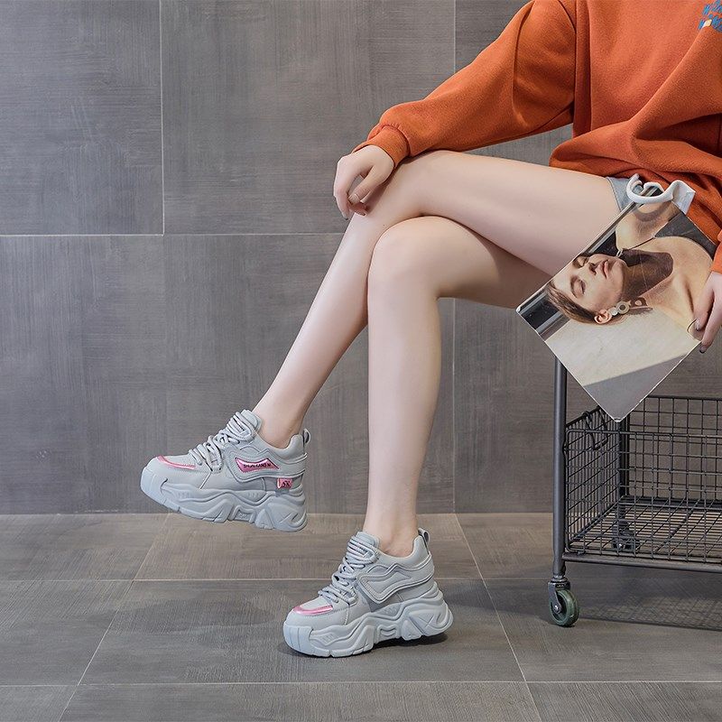 真皮内增高爆款老爹鞋女7cm秋季新款百搭单鞋松糕厚底运动休闲鞋
