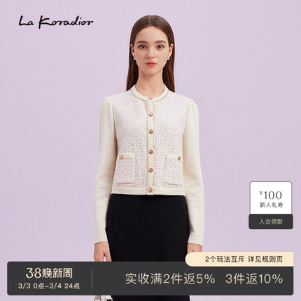 La Koradior拉珂蒂秋时尚商场同款新款法式香风气质单排扣针织衫