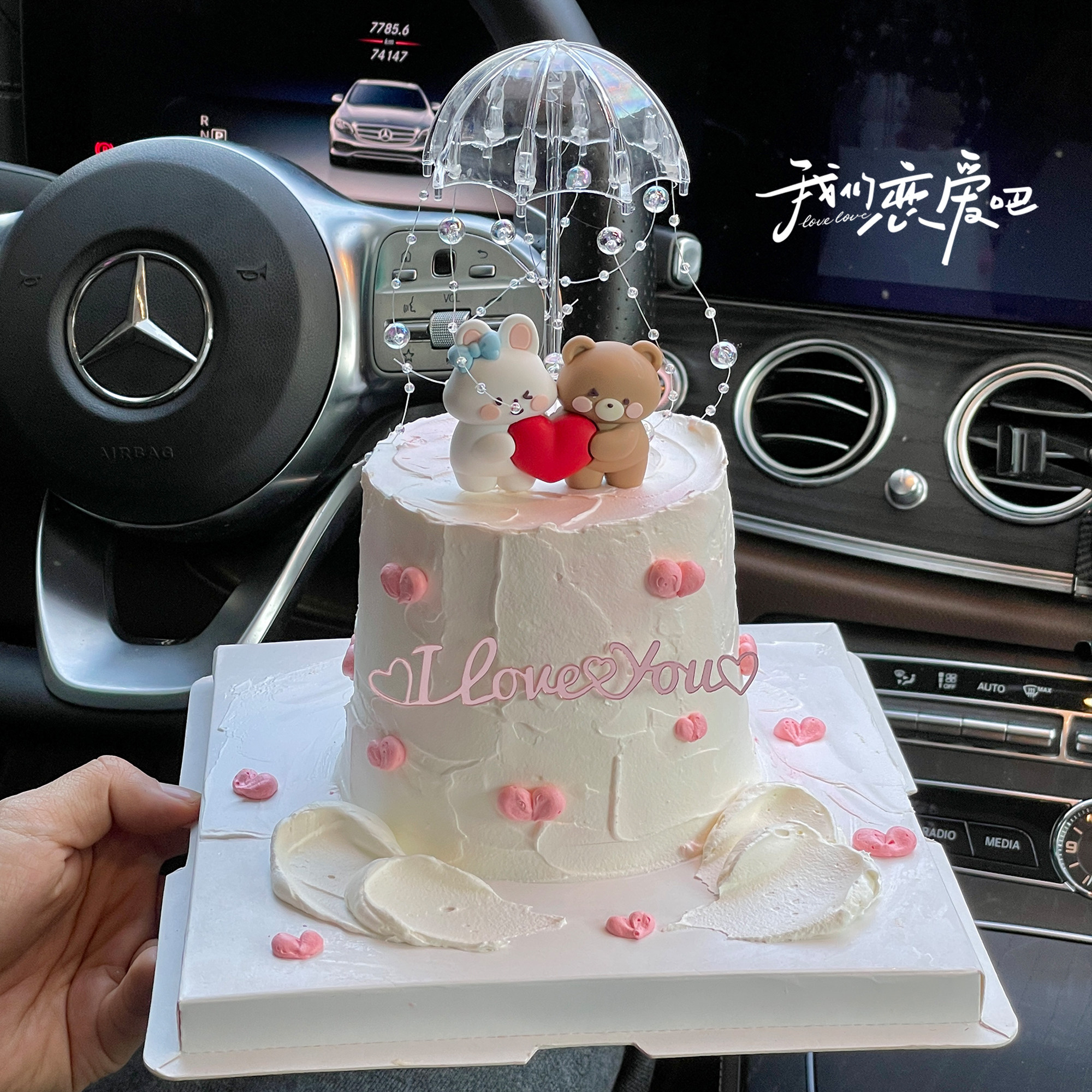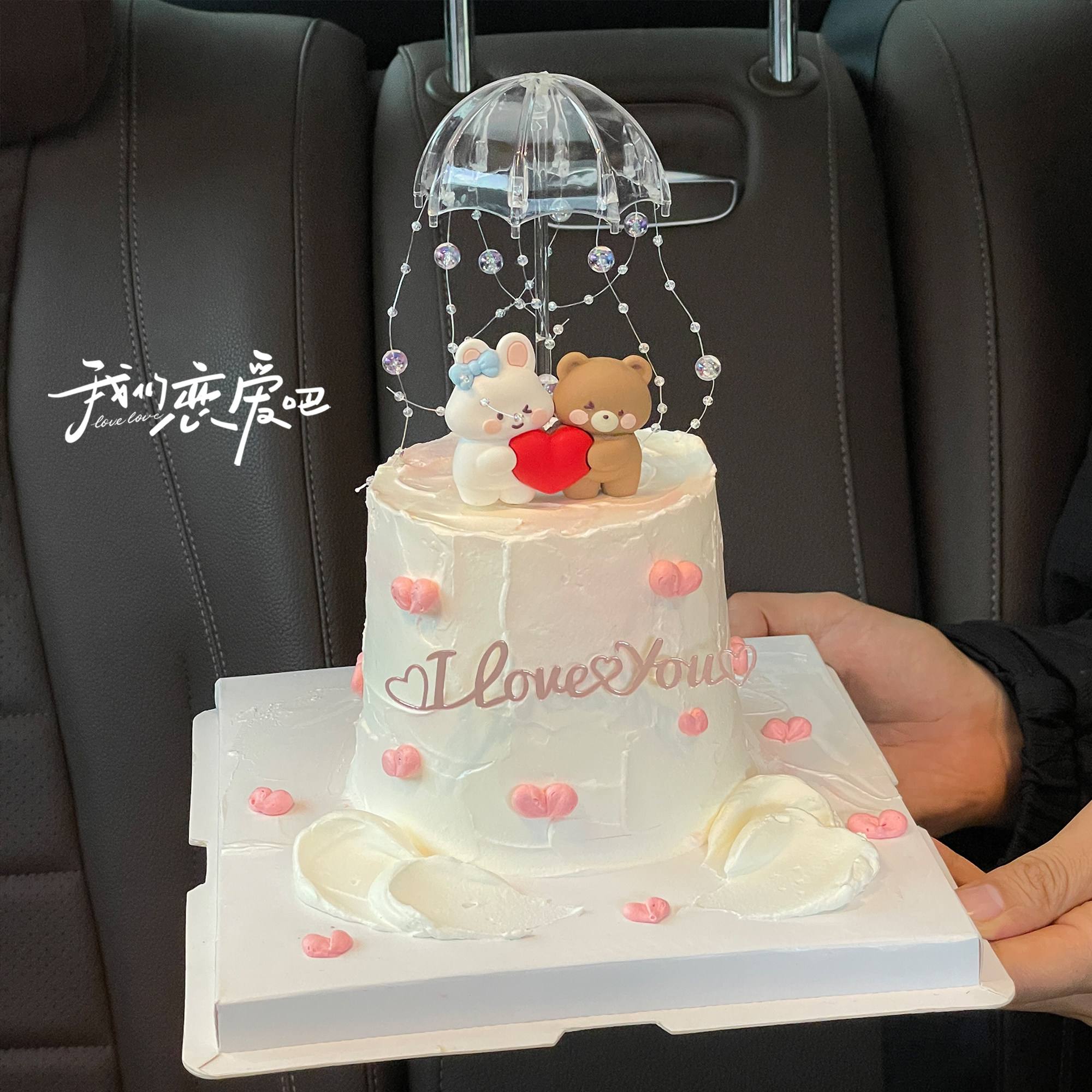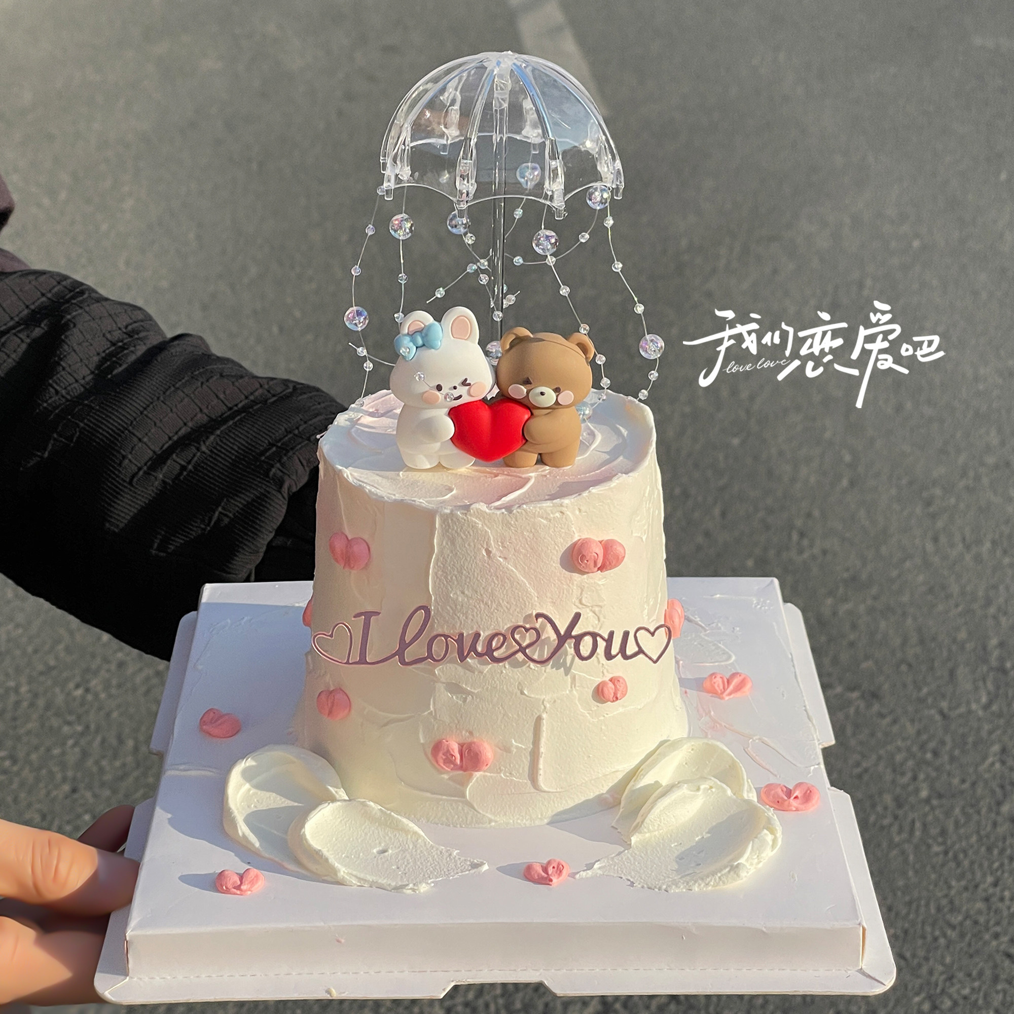 214情人节爱心小熊兔蛋糕装饰摆件透明小雨伞情侣love亚克力插件