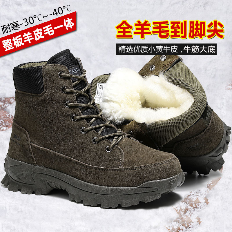 雪地靴男高帮羊毛靴皮毛一体东北防寒靴真皮加厚保暖棉鞋马丁靴子