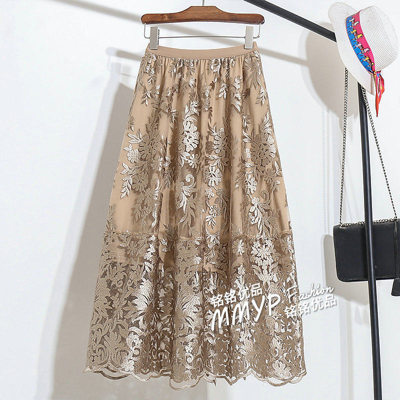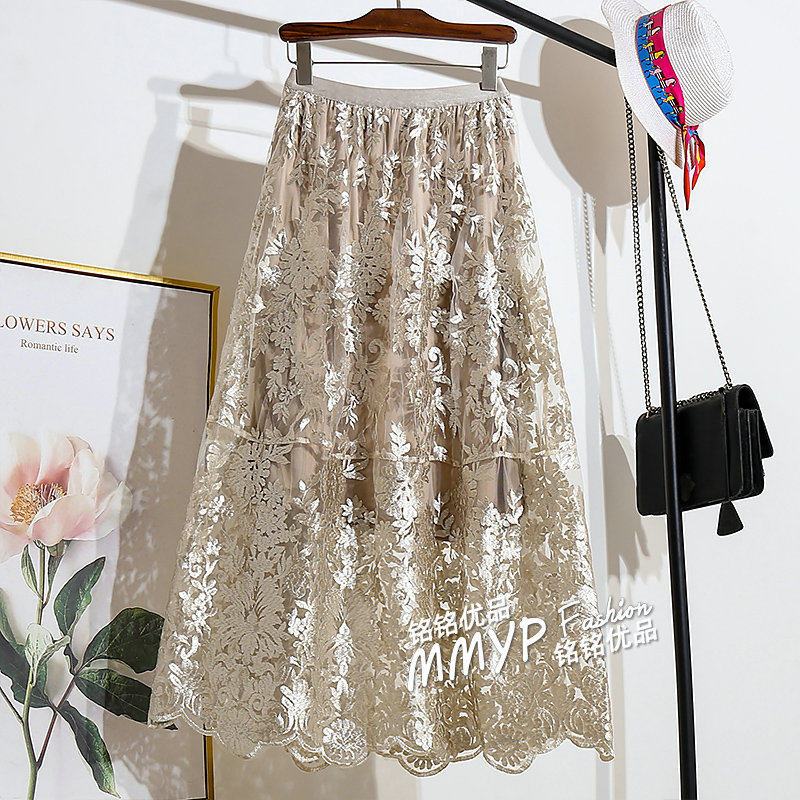 高端精致法式刺绣蕾丝网纱裙半身裙女2026秋冬轻礼服A字裙子伞裙