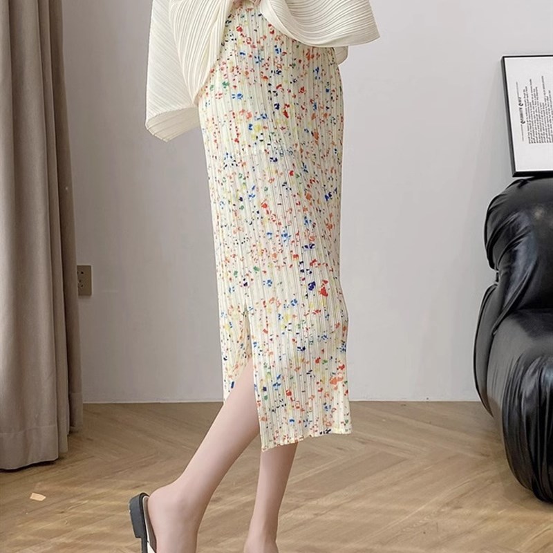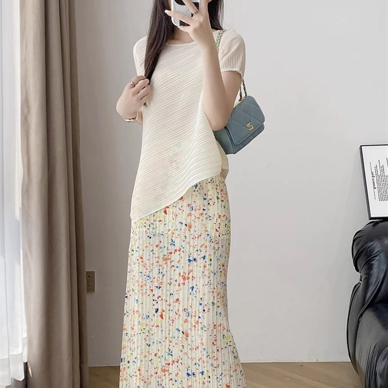 春夏季2024新款小个子高腰显瘦A字裙褶皱碎花半身裙女裙中长裙子