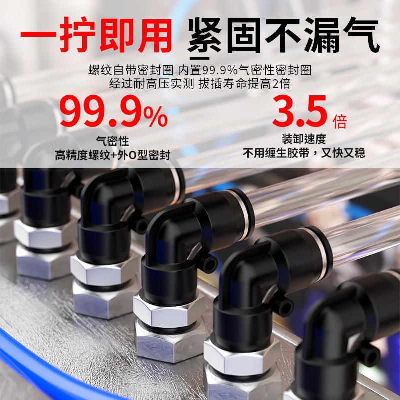 气管快速接头全铜304不锈钢快插快接螺纹弯头高压气嘴对接元件PL4