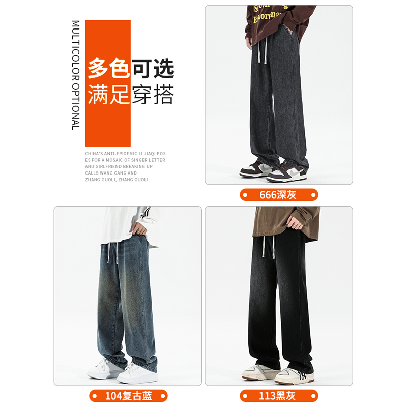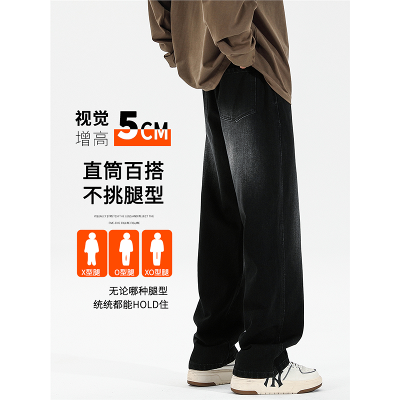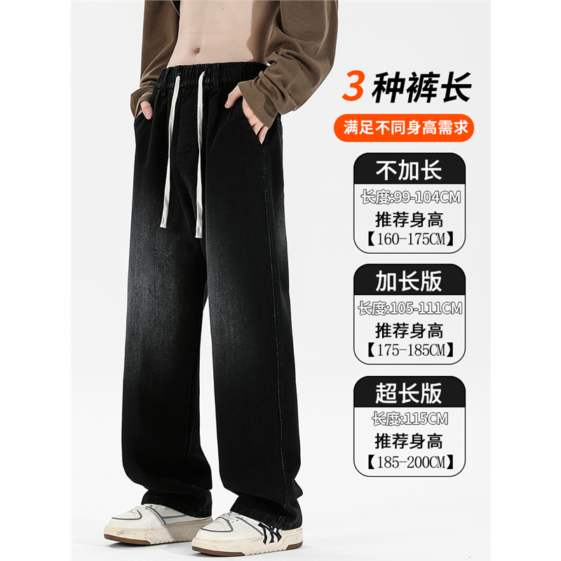 190cm牛仔裤秋冬男裤加长版高个子加绒款青少年宽松直筒阔腿裤子