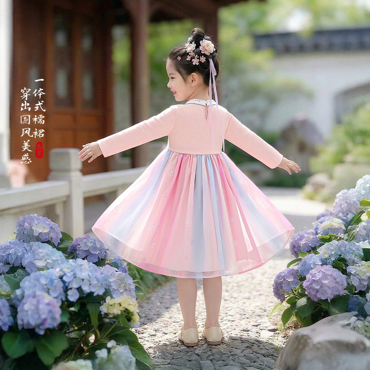 [7a抑菌]女童国风唐装春季新款儿童新中式汉服宝宝连衣裙女孩春装