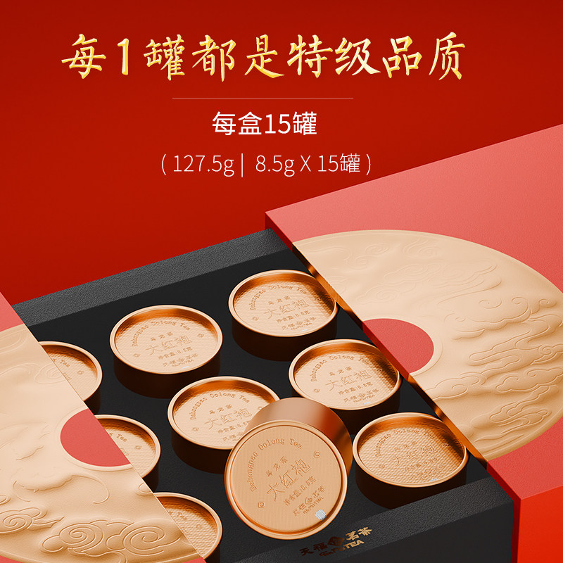 天福茗茶洪福大红袍福建武夷岩茶大红袍特级127.5g礼盒装年货送礼