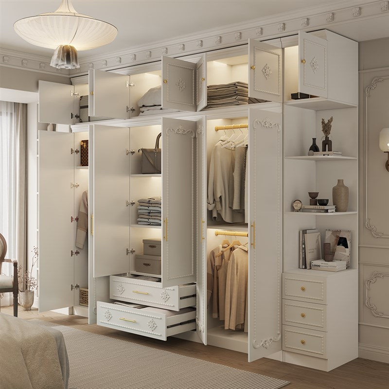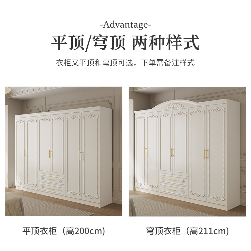 欧式衣柜家用主卧室带梳妆台边柜顶柜组合木质收纳柜子.整体大衣
