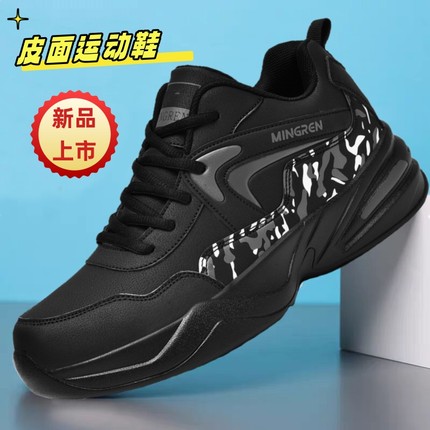 男鞋秋冬牛筋底皮面休闲鞋15岁防水运动跑步鞋16防滑旅游鞋波鞋18