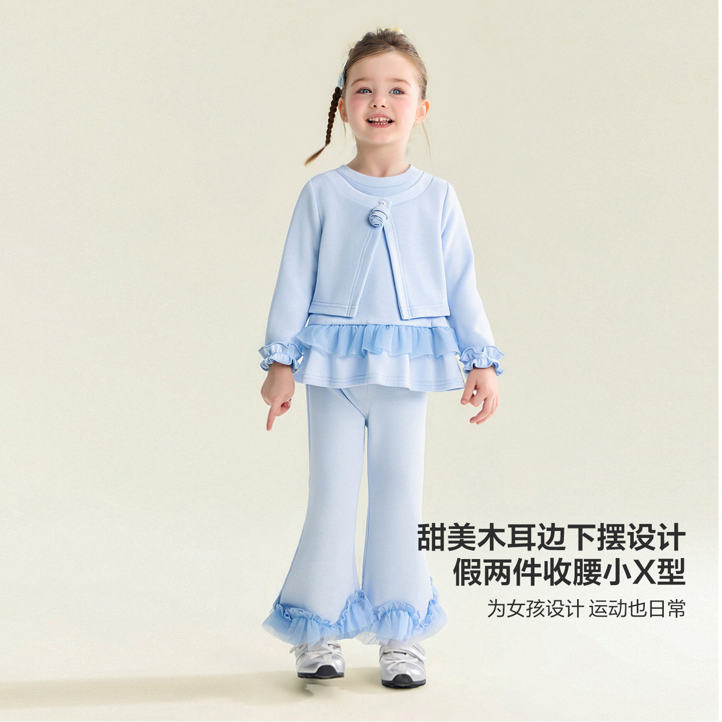 笛莎官方童装女童套装春季新款小童女孩儿童洋气休闲芭蕾风运动套