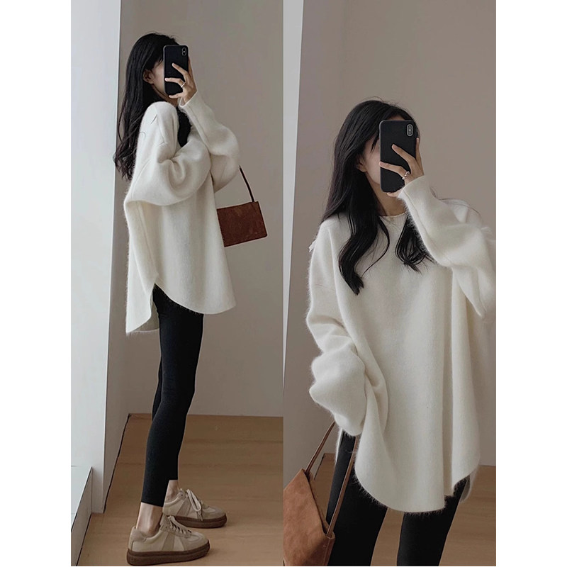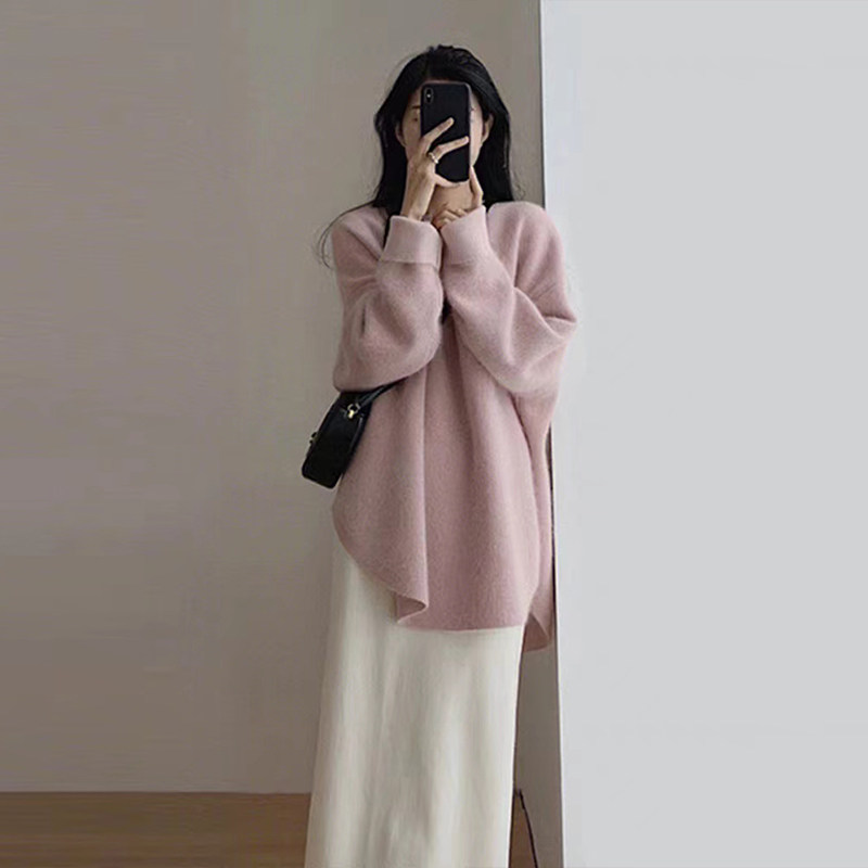 毛衣女秋冬加厚遮屁股慵懒风中长款针织衫内搭下半身失踪宽松上衣