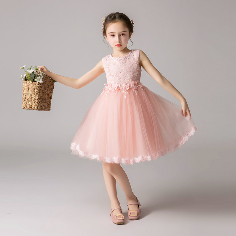 夏季儿童裙子蓬蓬白纱裙小女孩公主裙女童背心连衣裙中大童演出服