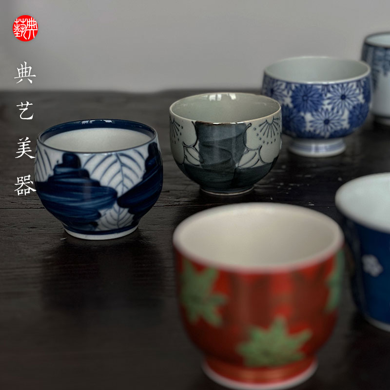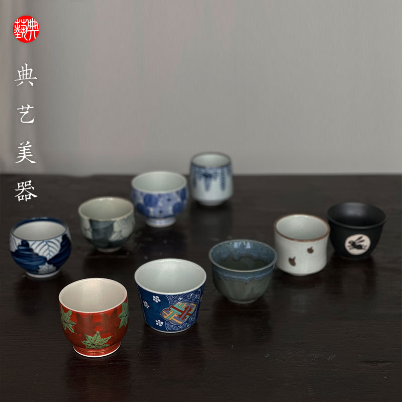 【典艺优选】日式有田烧染付青花源右卫门九枚入套组茶道主人杯