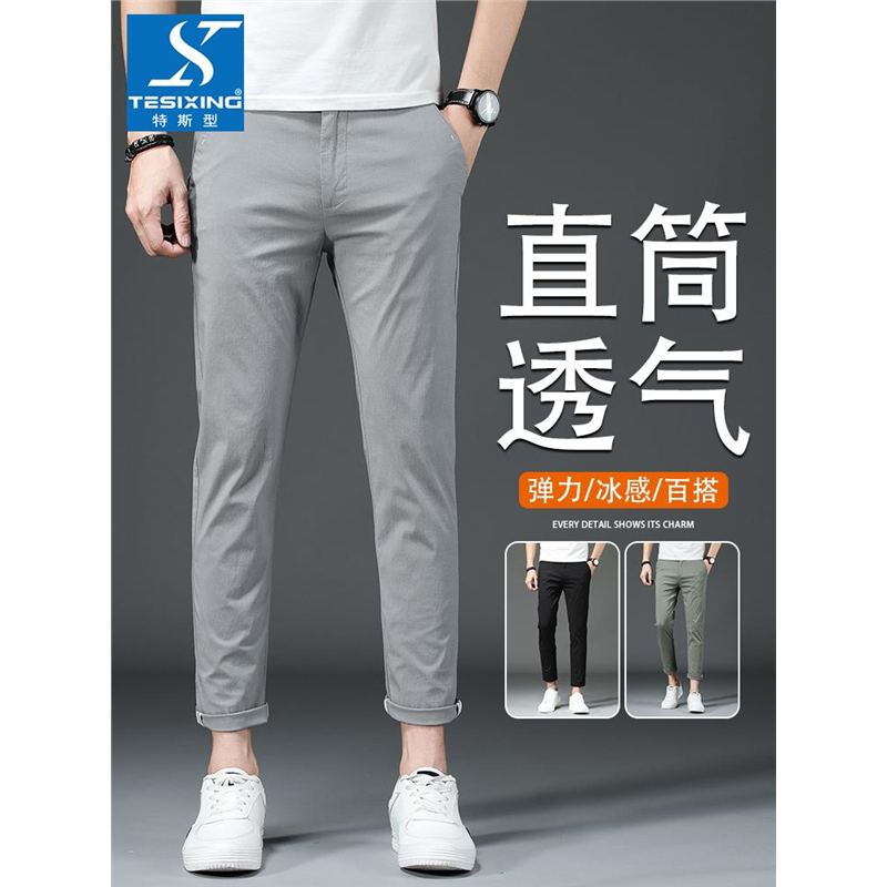 以纯YISHION九分裤子男夏季弹力直筒小西裤薄款修身小脚9分裤男士