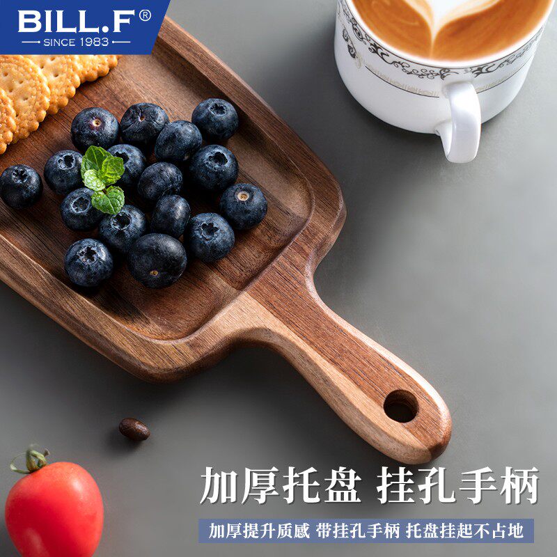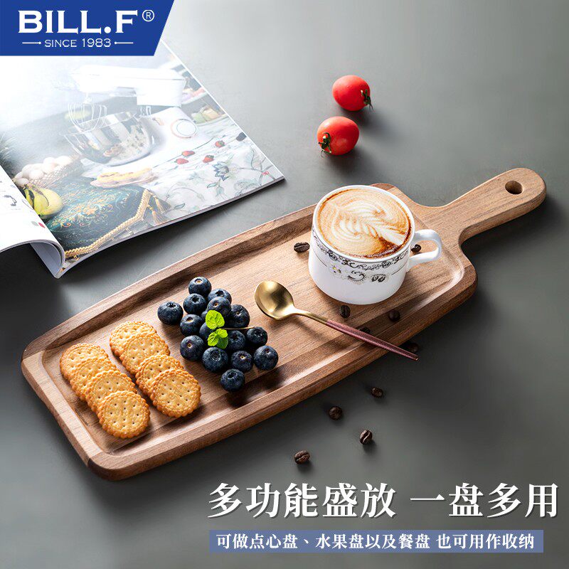 bill.f手工相思木长方形手柄简约面包板木制实木果盘木托盘点心盘