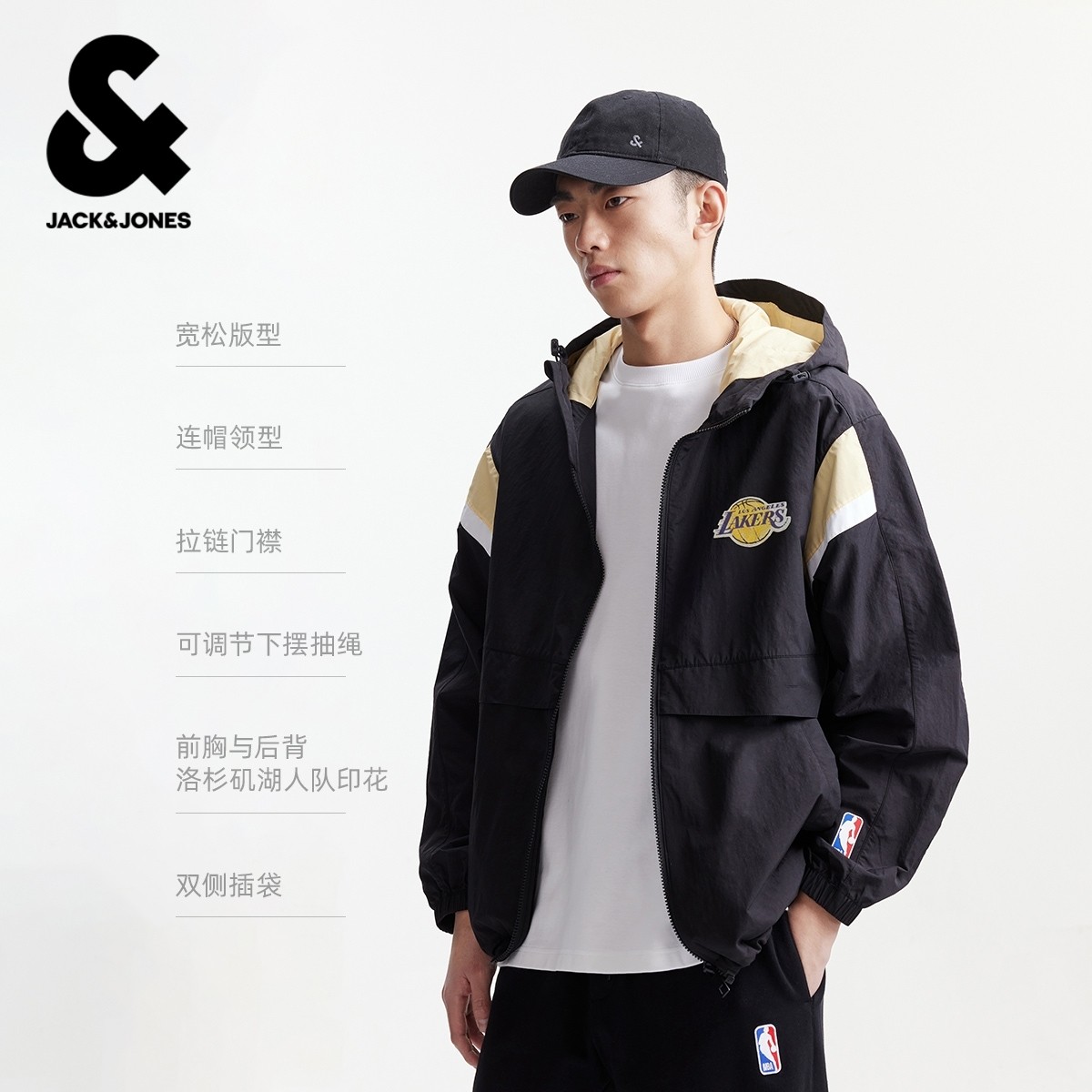 【NBA联名湖人队】杰克琼斯男士外套26年春新款连帽夹克上衣男装