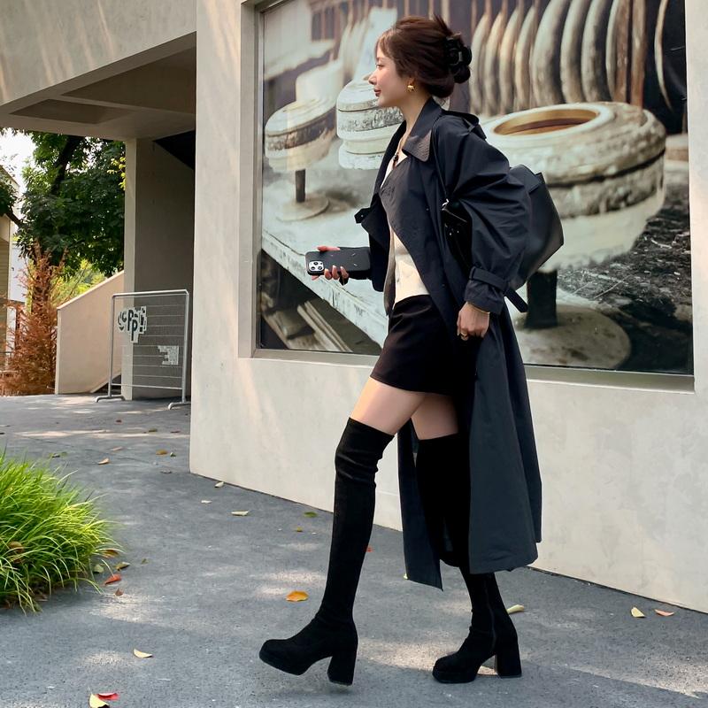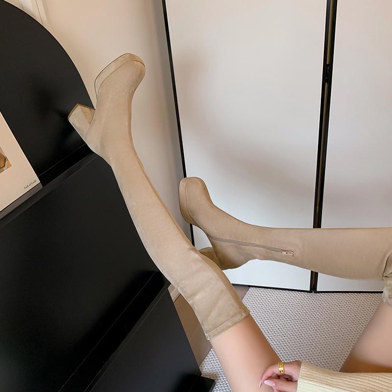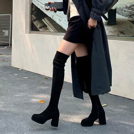 绒面高跟过膝靴小个子防水台厚底增高弹力显瘦高筒长筒靴白色皮靴