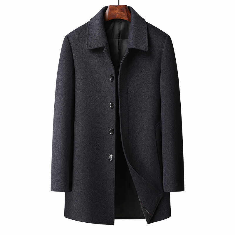 男士秋冬羊毛大衣外套翻领商务休闲纽扣毛呢大衣外套爸爸冬装外套