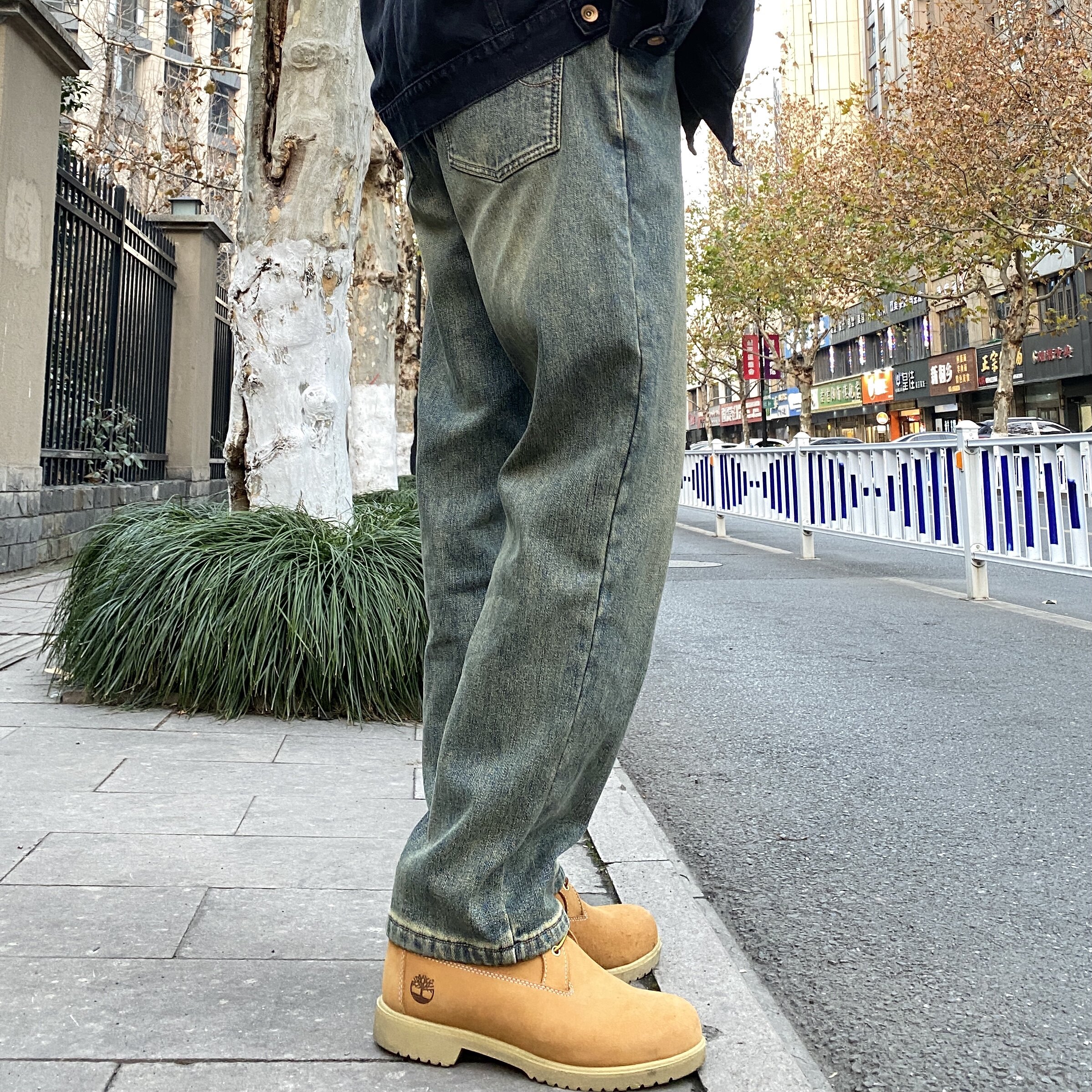 复古牛仔裤男宽松直筒阔腿裤子潮流美式高街vibe休闲百搭工装长裤