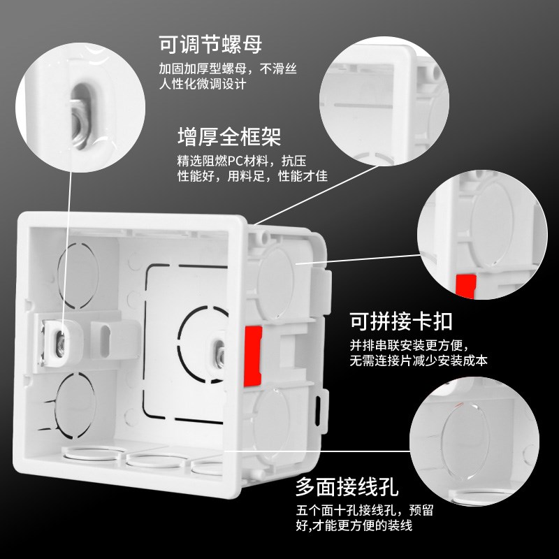 86型面板暗盒PVC底盒墙壁线盒插座暗盒开关接线盒可拼接暗装预埋