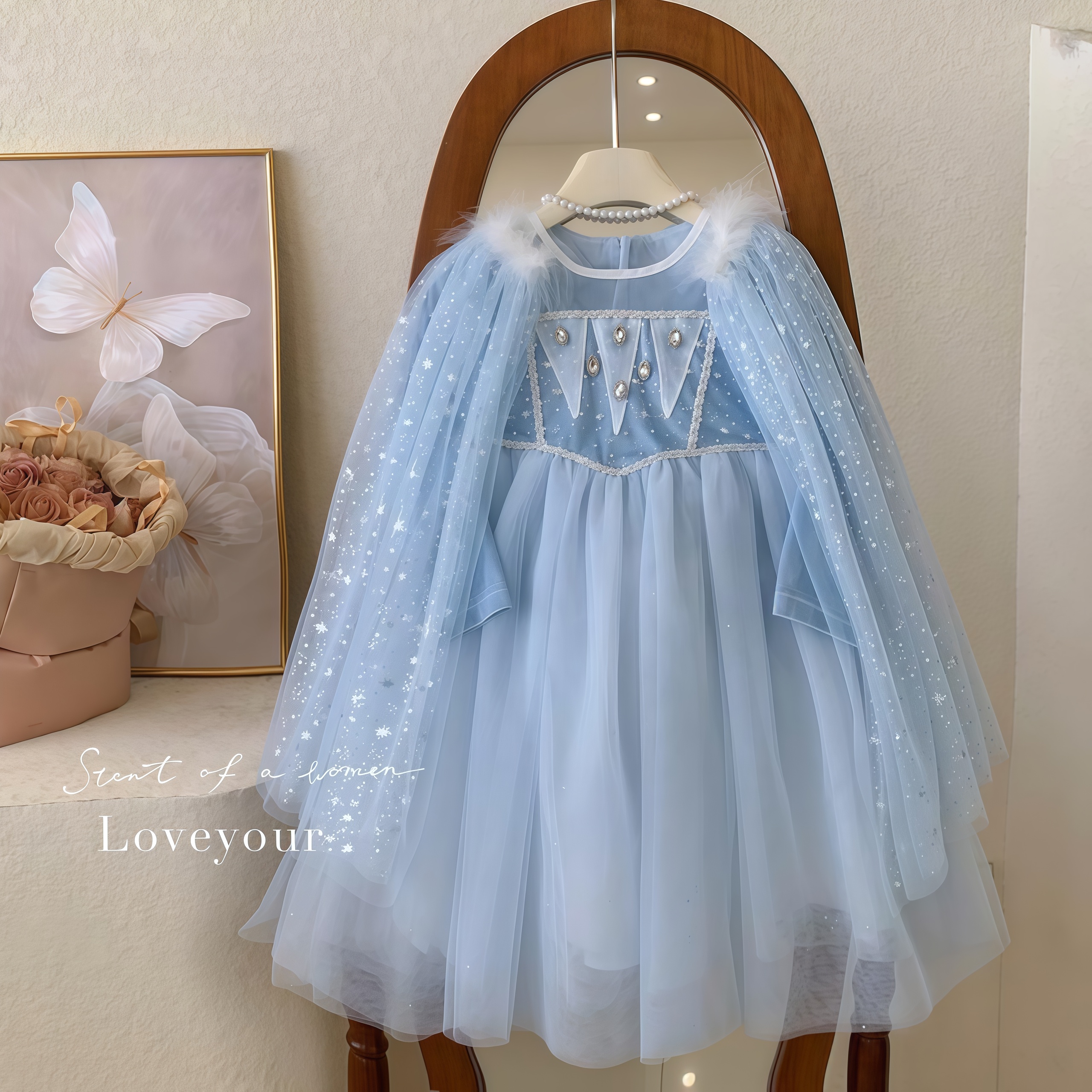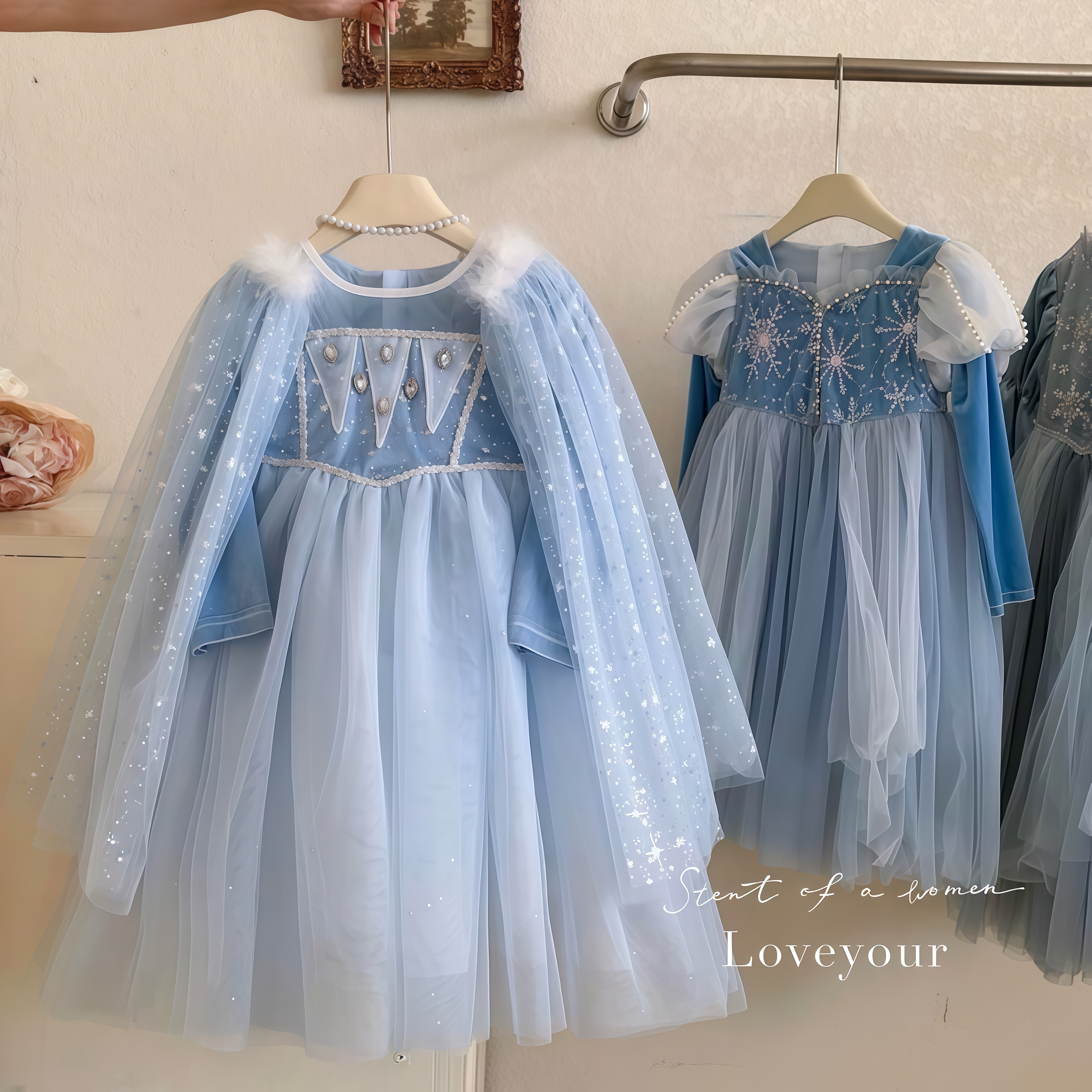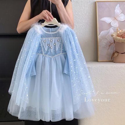 艾莎公主裙女童秋季连衣裙儿童爱莎裙子冰雪奇缘elsa披风生日礼服
