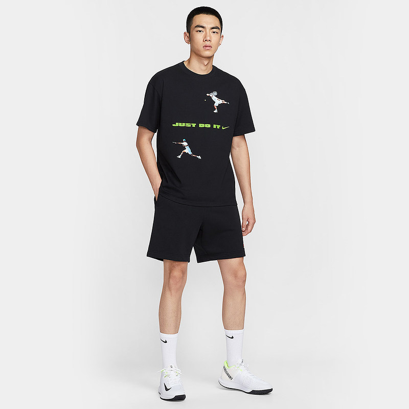 耐克男女宽松棉质T恤网球印花情侣针织棉柔软舒适短袖IV5616-010