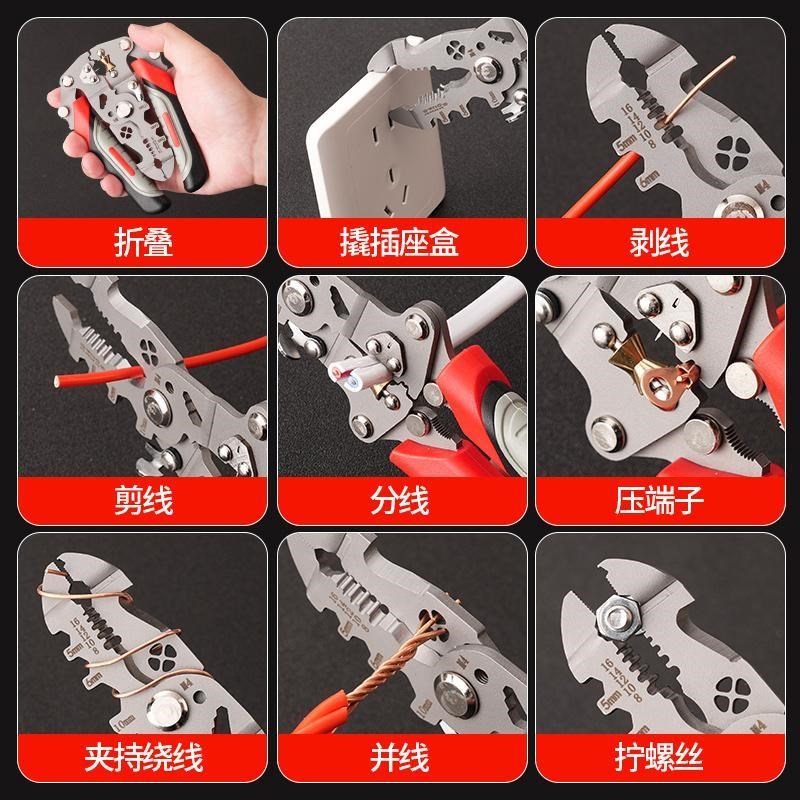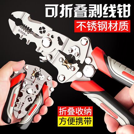 新款剥线钳电工专用多功能省力可折叠剥线剪线压线绕线家用剪线钳