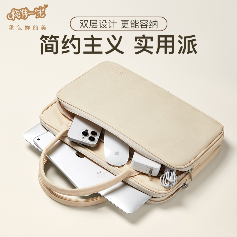 2025新款笔记本电脑包女士手提单肩包通勤托特包高颜值适用苹果macbook联想13华为惠普pro15戴尔16拯救者
