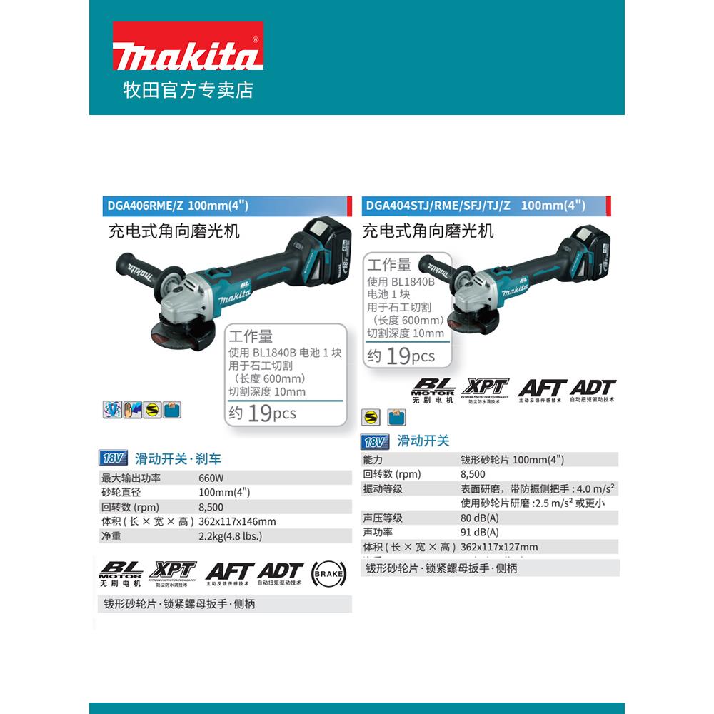 日本牧田DGA404RME/402充电角磨机打磨机手持式直流电18V无刷电机