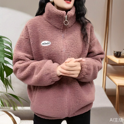 加绒加厚卫衣女春秋冬季颗粒绒外套妈妈保暖洋气时尚拉链毛呢棉服
