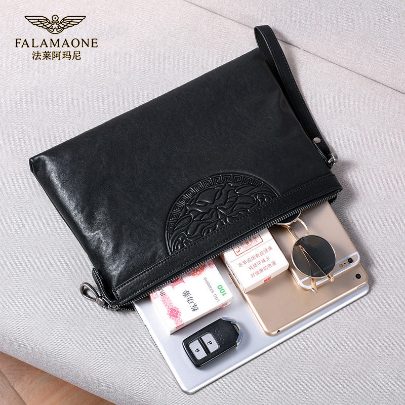 仅亏一天牛皮法莱阿玛尼轻奢男士手包百搭夹包商务休闲男包腋下包