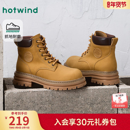 热风厚底马丁靴女款2025年冬季新款时尚百搭系带大黄靴贵族风女靴