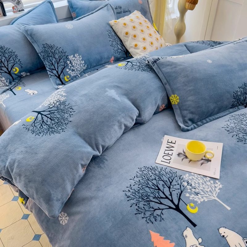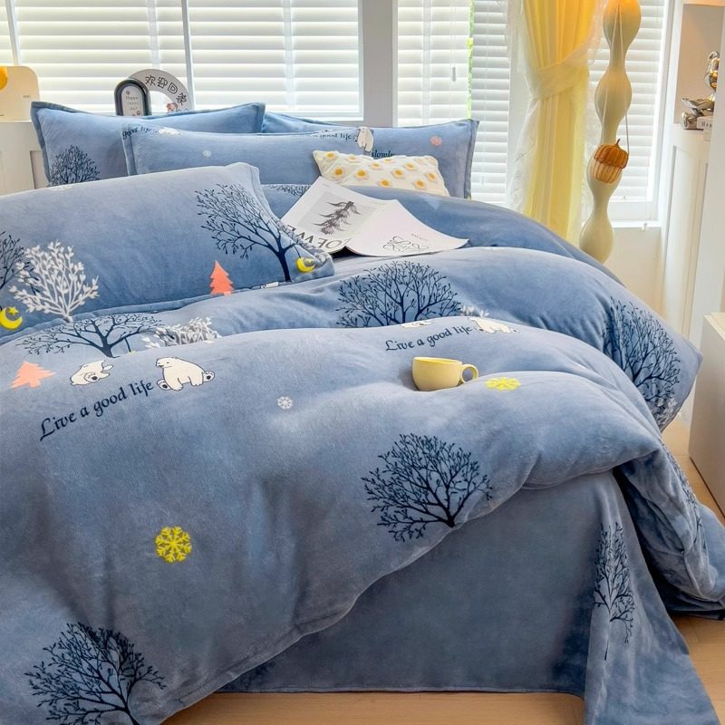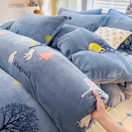 牛奶绒被套冬季加绒被罩绒被套珊瑚绒保暖加厚毛绒被套宿舍四件套