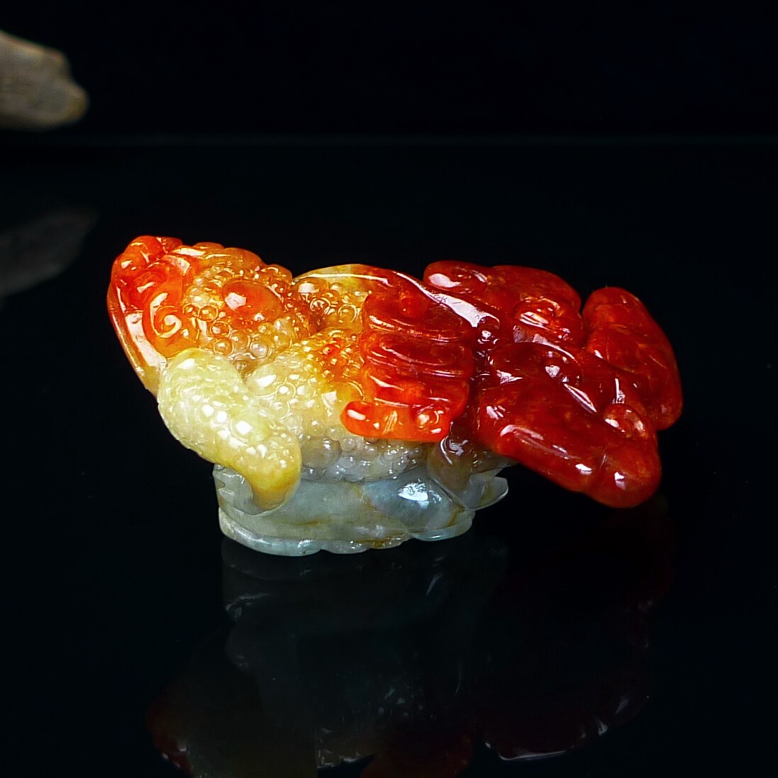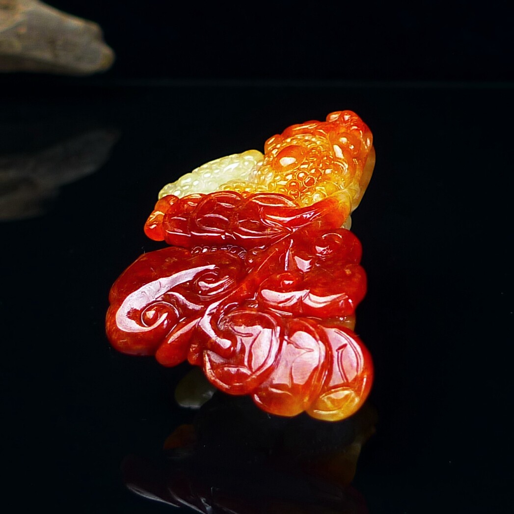 缅甸翡翠A货红翡金蟾玉石小摆件