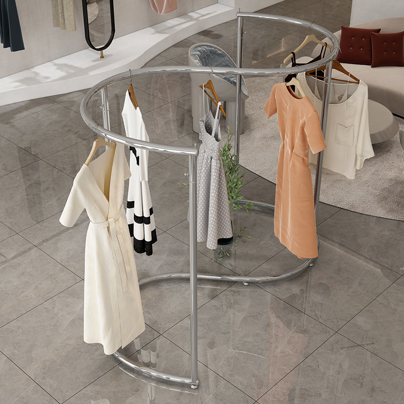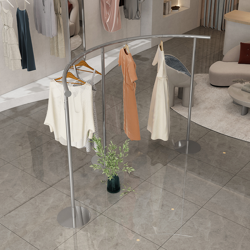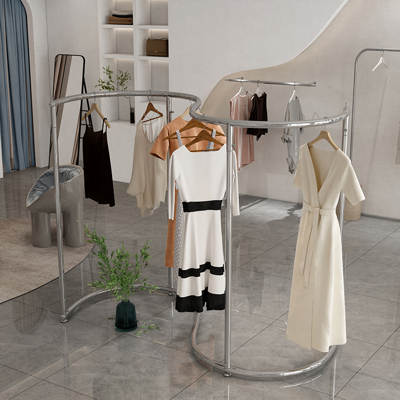 不锈钢弧形中岛架服装店展示架落地式货架陈列道具挂衣杆S形设计
