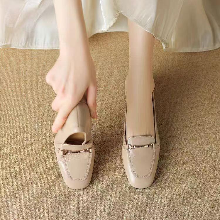品牌软皮英伦小皮鞋2025年新款春秋季百搭粗跟方头一脚蹬单鞋女