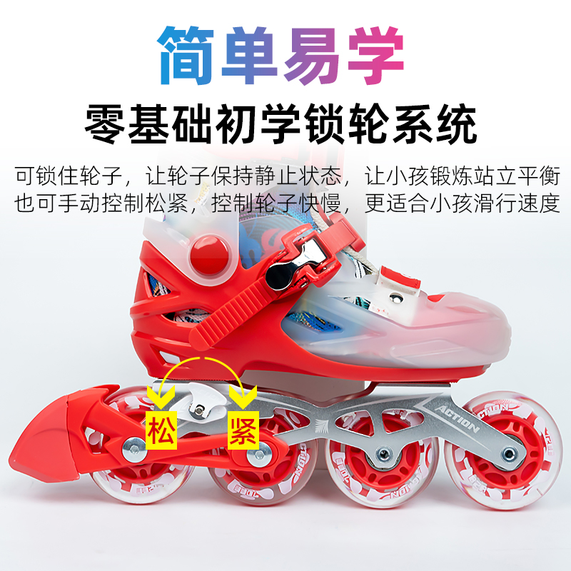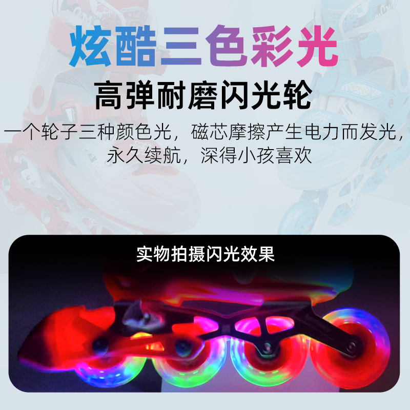 ACTION动感新款A72轮滑鞋儿童8轮全闪溜冰鞋男女全套装直排轮旱冰