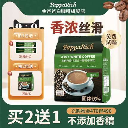 马来西亚原装进口速溶白咖啡金爸爸香浓三合一提神解困学生条装粉