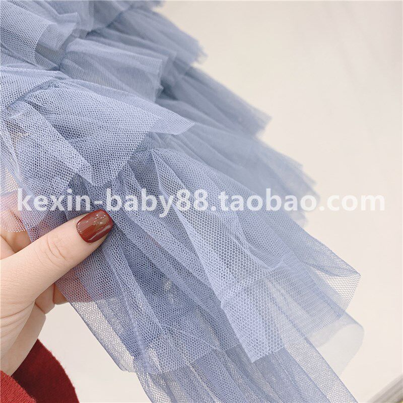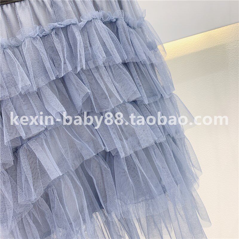 韩版童装2020年春季新品女童复古百搭公主多层荷叶边网纱半身长裙