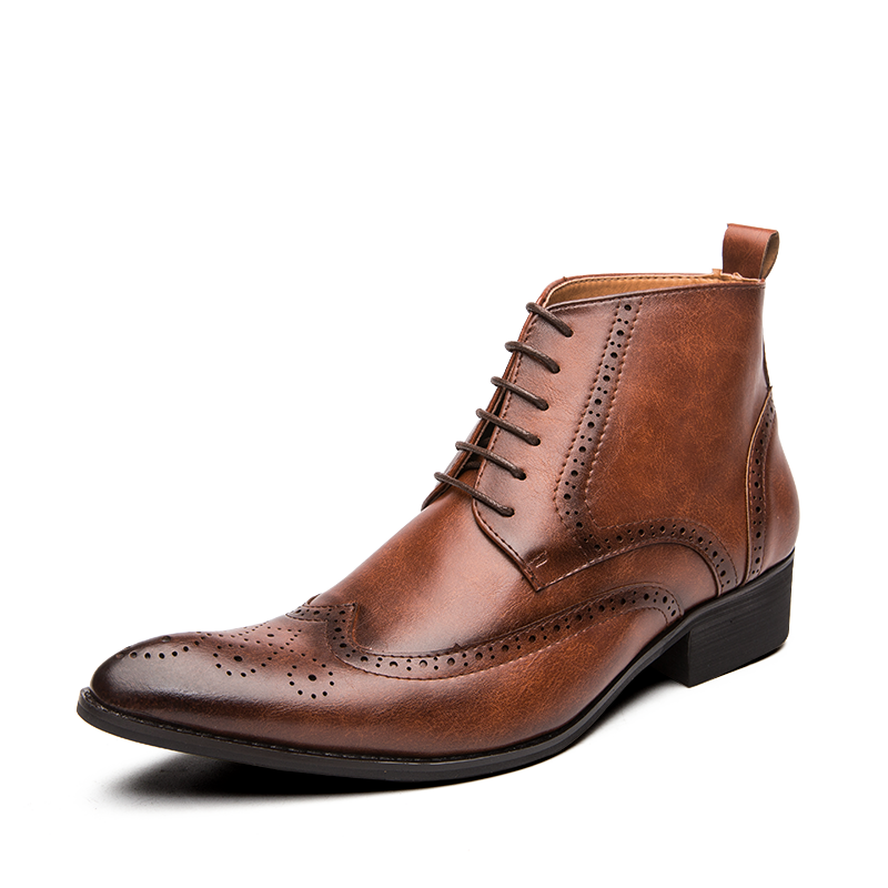 布洛克雕花皮鞋商务英伦风男鞋正装皮靴男尖头靴子高帮马丁靴短靴